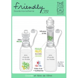 GOURDE ISOTHERME FRIENDLY Gourde isotherme en inox avec filtre. Prix 39,90 € PLUME LOTUS Ajouter au panier
