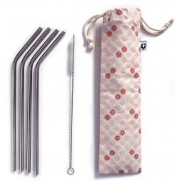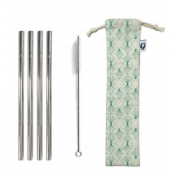Set de 4 pailles droites + pochette en coton bio + goupillon...