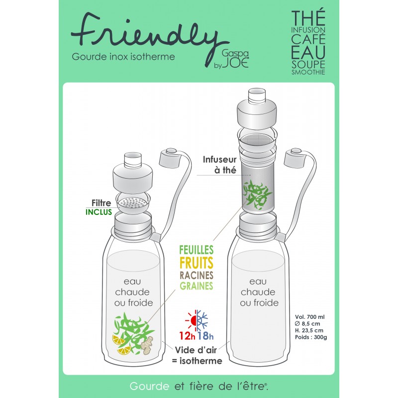 Grâce à son accessoire inox, filtrez directement dans la bouteille et conservez vos boissons chaudes ou froides.